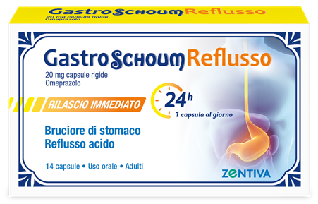 GastroSchoum Reflusso è un medicinale a base di omeprazolo. Leggere attentamente il foglio illustrativo. Aut. Min. 29/10/2025.